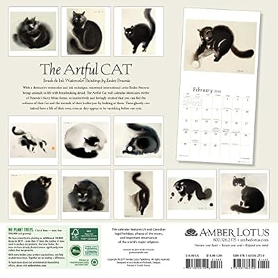 The Artful Cat 2018 Wall Calendar: Brush & Ink Watercolor Paintings by Endre Penovac Details